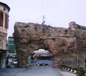 Kentin merkezinde anıtsal antik bir yapı kalıntısı olarak göze çarpar.Tuğladan örülü, altından motorlu araçların da geçebileceği büyük kemer ve hamam duvarlarının bir kısmı, 19.yüzyıla ait konutların içinde kalmıştır. Bu kalıntılar, Roma döneminde kente teraziler ve kemerlerle su getirilmesinden sonra inşa edilen hamam kalıntısına aittir.